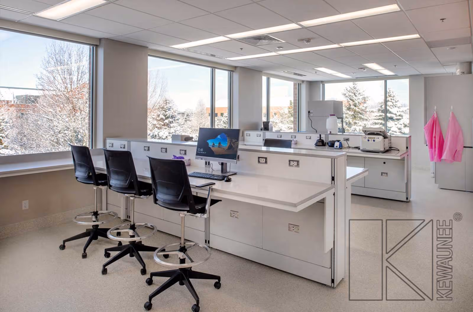 Choose from a variety of lab-grade worksurface materials tailored to your functional needs—options include Kemresin® epoxy resin, phenolic resin, and high-pressure laminate. These surfaces combine chemical resistance, durability, and aesthetic versatility to suit diverse laboratory applications.